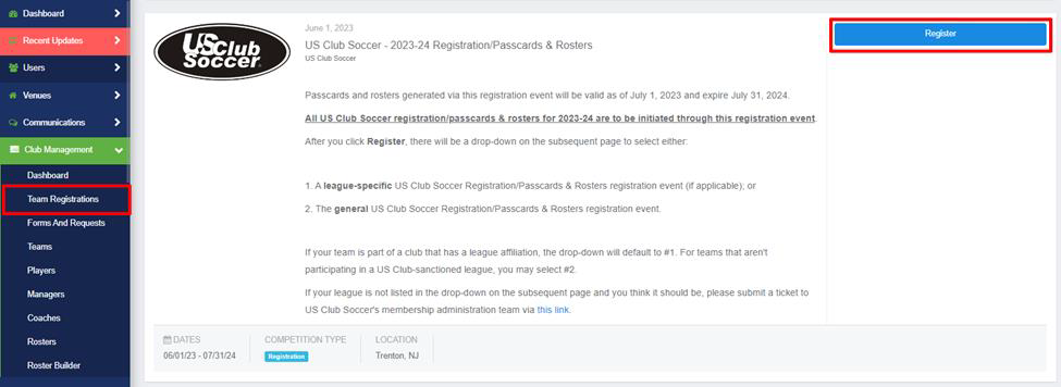 For US Club carding, please register your teams for South Jersey Girls Soccer League – 2024-26 US Club Soccer Registration/Passcards & Rosters event Login to GotSport | Club Management | Team Registrations | Registration and Select Register for: US Club Soccer – 2024-25 Registration/Passcards & Rosters